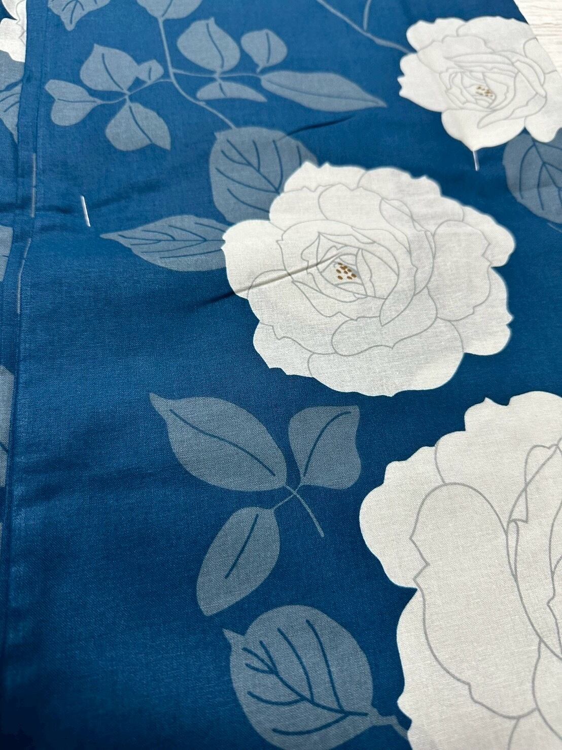 薔薇のモチーフは華やかさを持ちつつも、白とグレーでまとめているので派手すぎず、大人の女性が夜のお祭りや夏のお出かけにしっとりと着こなせる一枚です。